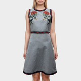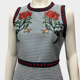 Gucci Women's Rose Embroidered Checkered Blue and White Dress