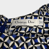 Christian Dior Women's Geometric Print Blue and White Silk Dress