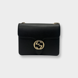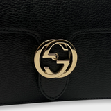 Gucci Women's Interlocking G logo Black Leather Shoulder Bag