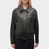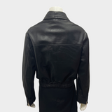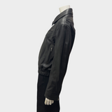 Nour Hammour Women's Cropped Black Leather Bomber Jacket