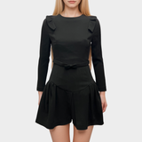 Miu Miu Women's Bow Ruffled Detail Black Mini Dress