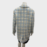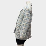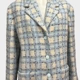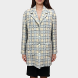 Chanel Women's Embellished Blue and Cream Tweed Coat