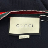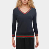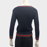 Gucci Women's Navy Blue V-Neck Wool Sweater With Red and Green Accents