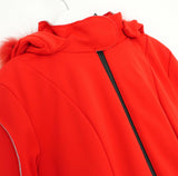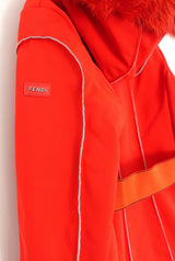 Fendi women's Bright Red Fur Trimmed Ski Puffer Jacket