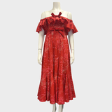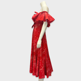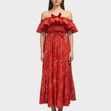 Giambattista Valli Red Floral Off-The-Shoulder Cotton Maxi Dress With Ruffles and Bows