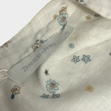 Zimmermann White Linen Button-Down Dress With Yellow And Blue Floral Pattern