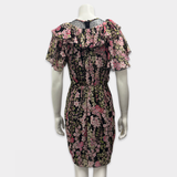 Giambattista Valli Black Silk Dress with Pink and Green Floral Pattern