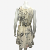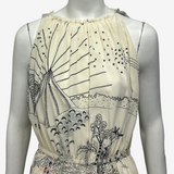 Valentino Ecru Silk Flowy Dress With Abstract Line Art Print
