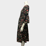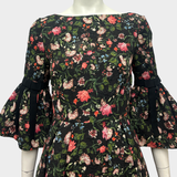 Erdem Black Floral Dress With Black Ribbon Accents
