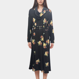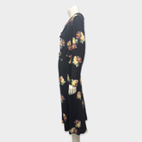 Prada Floral-Print Sablé Black Midi Dress