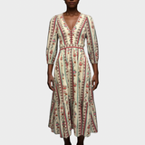 Emporio Sirenuse Cream With Multicolor Floral And Geometric Patterns Cotton Loretta Dress