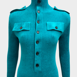 Bottega Veneta Women's Ribbed Turquoise Dress