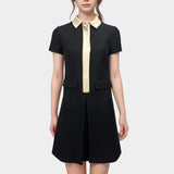 Valentino Black Wool And Silk Dress With Beige Accent