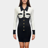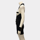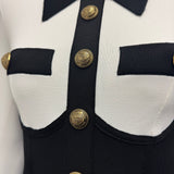 Balmain Black And White Knit Stretch Dress With Gold Button Details