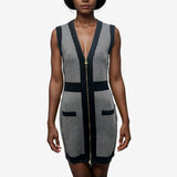 Balmain Black and White Stretch Knit Houndstooth Dress