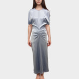 Victoria Beckham Light Blue Satin Dress With Ruched Design