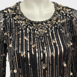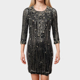 Jenny Packham Women's Black and Silver Sequin and Crystal Silk Mini Dress