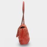 This plush Chanel handbag offers a cozy yet chic accessory with its soft faux fur texture. The standout pink hue adds a playful touch to any outfit, complemented by the iconic interlocking CC logo. Its compact size makes it perfect for carrying essentials while maintaining a luxurious vibe. The strap adds a fashionable edge, making it versatile for both day and night looks. A statement piece that combines comfort and style seamlessly.