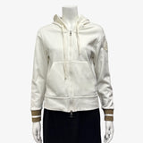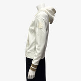 Elevate your casual wardrobe with this chic white hoodie, designed for comfort and style. The soft cotton fabric ensures a cozy fit, perfect for layering or wearing solo. Featuring a stylish zip-up front and a hood, it’s ideal for those breezy days. The contrast gold-striped cuffs add a touch of flair, making it easy to transition from lounging at home to a casual outing. Pair it with your favorite jeans or joggers for an effortless look. Perfect for the modern individual who values both style and comfort.