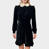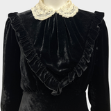 Miu Miu Women's Ruffled with Lace Collar Black Velvet Mini Dress