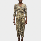 Isabel Marant Beige and Brown Animal Print Gathered Silk-Blend Maxi Dress