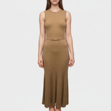 Gabriela Hearst Women's Ribbed Beige Wool Dress