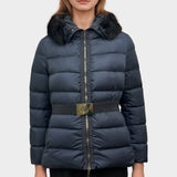 Moncler Women's Navy Down Filled Belted Parka Coat