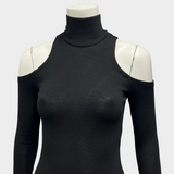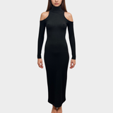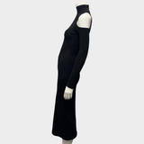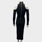 Balmain Women's Cold Shoulder Black Wool Maxi Dress