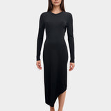 Victoria Beckham Black Asymmetrical Long Sleeve Maxi Dress