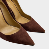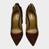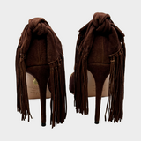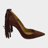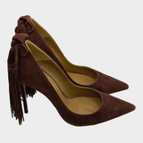 Aquazzura brown suede pumps with back knot and fringes detail