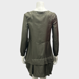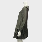 Chloé Khaki Green Silk Dress WIth Ruffle Design