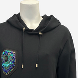 Balmain women's black cotton rhinestone appliques long hoodie