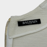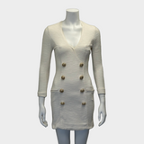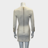 Balmain women's ecru cotton tweed long sleeved mini dress
