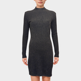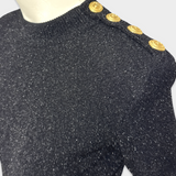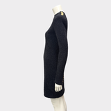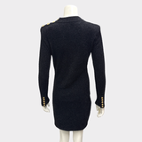 Balmain Black Glitter Long Sleeve Dress With Gold Button Details