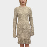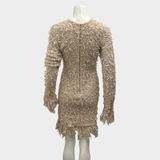 Balmain Nude Pink Frayed Boucle Stretch Knit Dress
