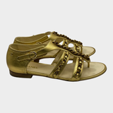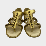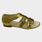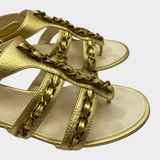Chanel women's metallic gold gladiator sandals with chain detailing