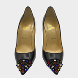 Christian Louboutin black leather heels with multicolour studs