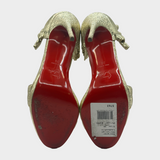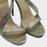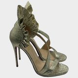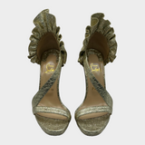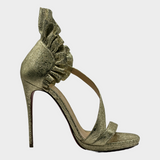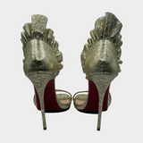 Christian Louboutin gold textured leather ruffled embellished sandal heels