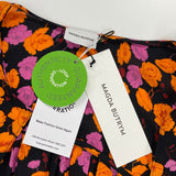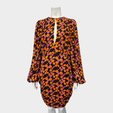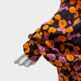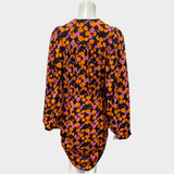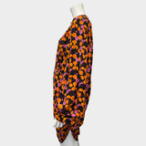Magda Butrym orange and purple flower print silk dress with puffy sleeves