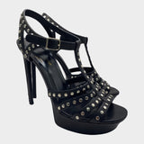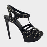Saint Laurent black leather stud embellished leather platform stiletto heels