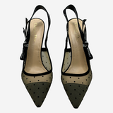 Christian Dior black polka dot tulle sling-back J'Adior heels