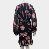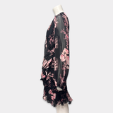 Giambattista Valli Black Silk Long Sleeve Dress With Pink Floral Design