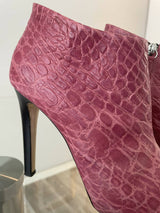 Giuseppe Zanotti dark pink mock croc leather heeled ankle boots