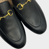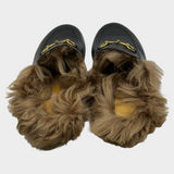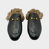 Gucci women's black leather Shearling-Lined Princetown Horsebit sliders