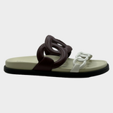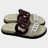 Hermes women's burgundy and white leather Extra sandals