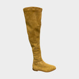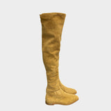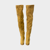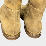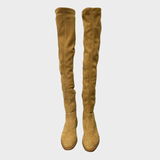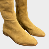Jimmy Choo women's camel suede knee boots with metal ring on the back