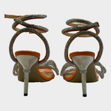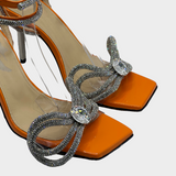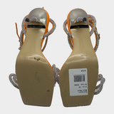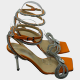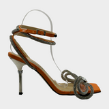 Mach&Mach orange leather square front sandal heels with crystal embellishment
