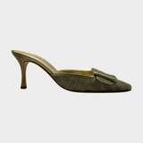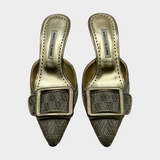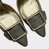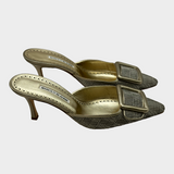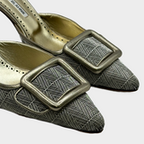 Manolo Blahnik silver metallic fabric/leather open back pumps