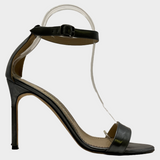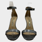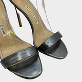 Manolo Blahnik women's silver grey metallic strappy leather heels