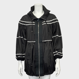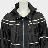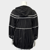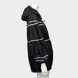 MONCLER women's black and white polyamide oversized rain coat with ruffles and a hoodie
